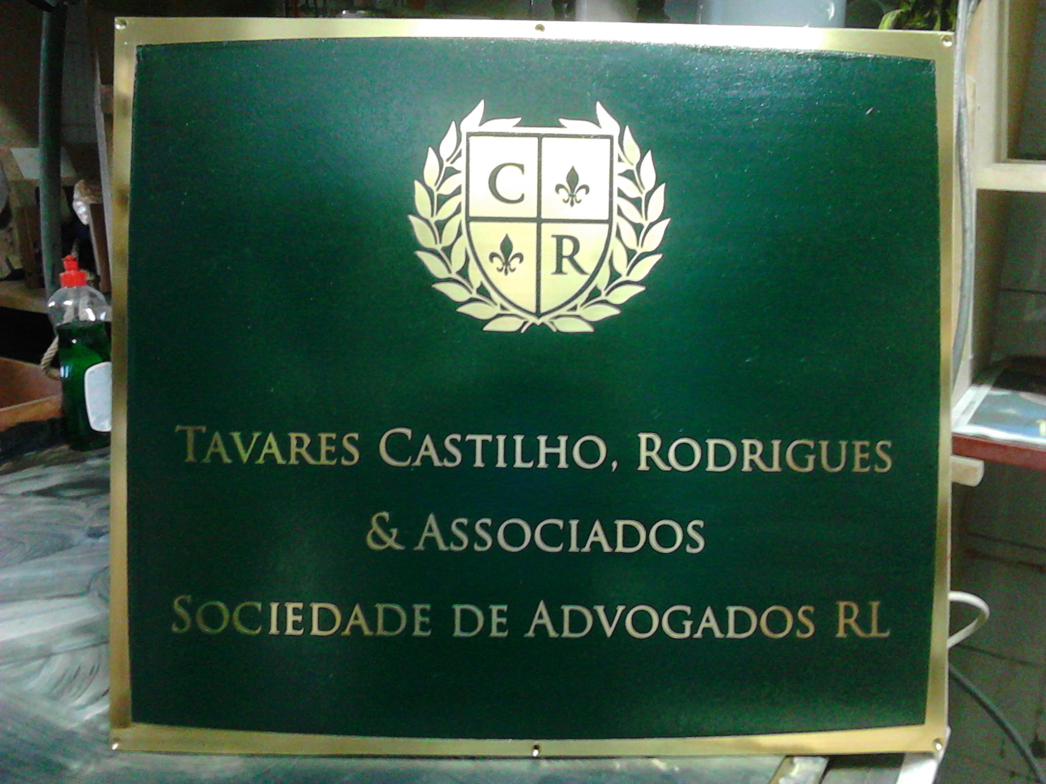 placa bronce fabricada para un bufete de Portugal instalada en el exterior a puerta de calle.