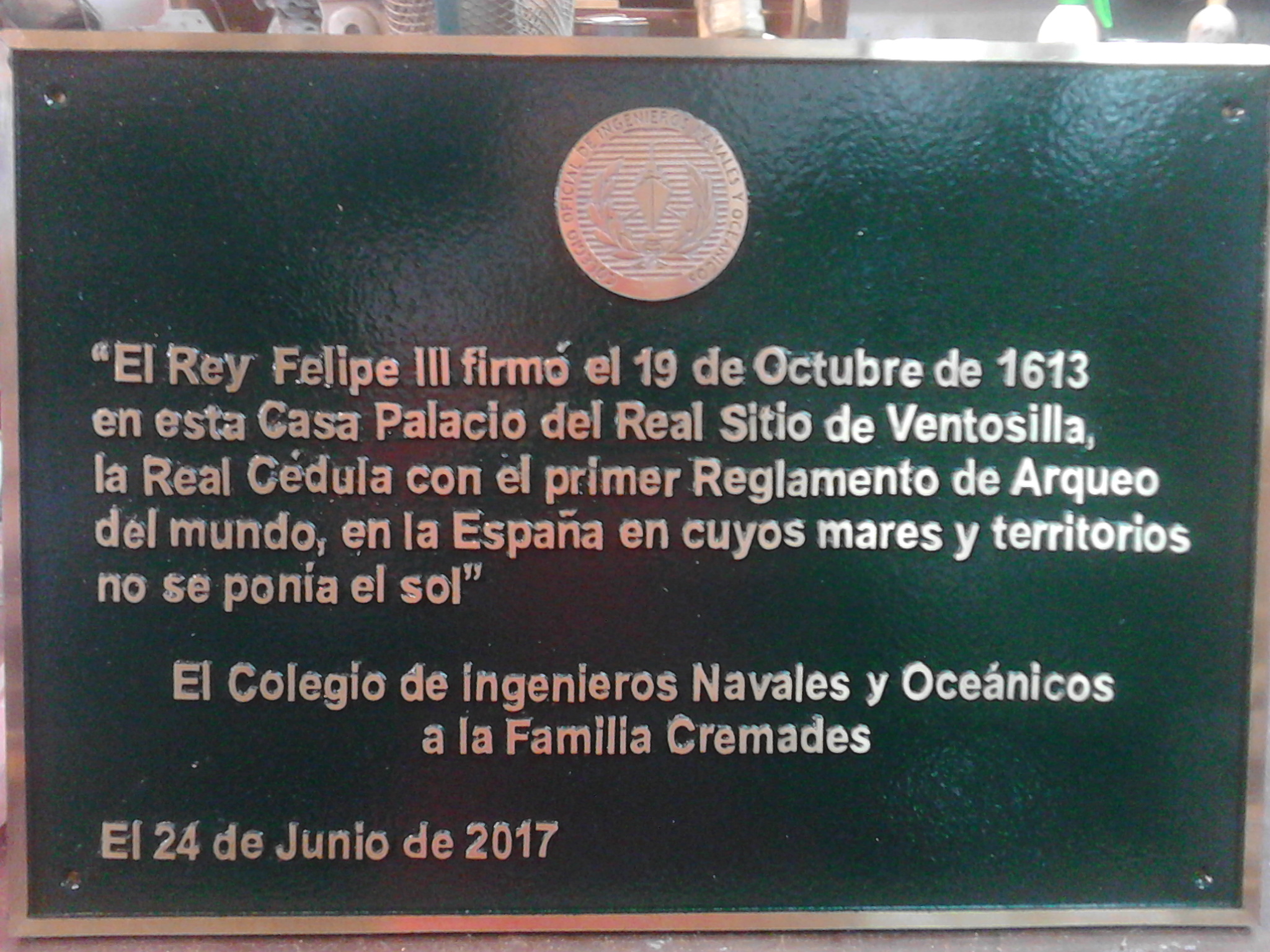 Placa en fundicion de Bronce homenaje al Colegio de Ingenieros Navales y Oceánicos a la Familia Cremades
