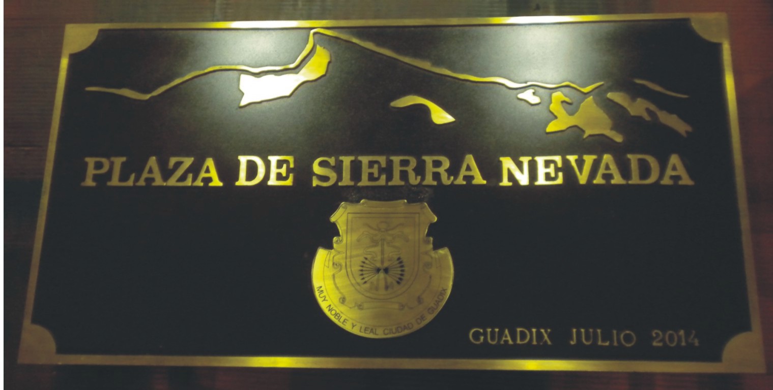 placa en bronce para una plaza de Sierra Nevada con escudo grabado.