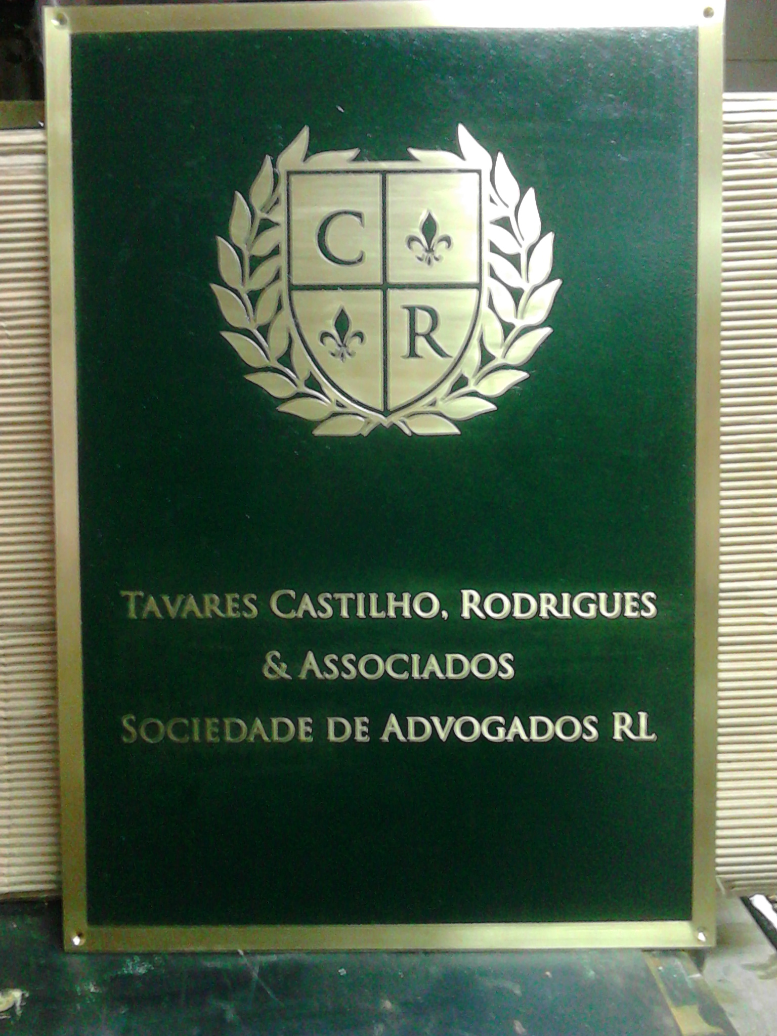 placa bronce fabricada para un bufete de Portugal instalada en el exterior a puerta de calle.
